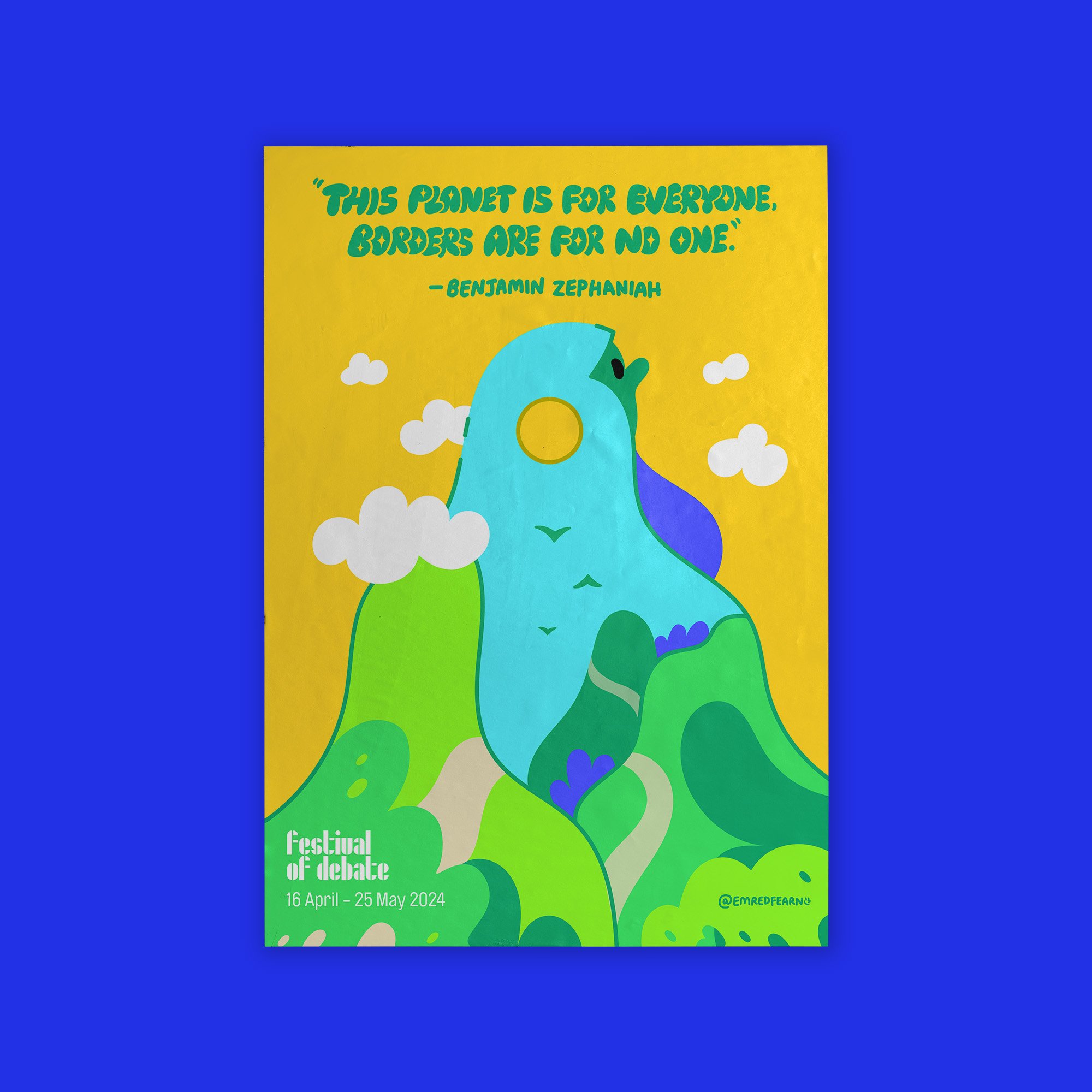 I illustrated and designed severall posters for the Festival of Debate held in Sheffield for two consecutive years over 2023 and 2024. All the posters surrounded quotes we were able to choose a selection from to theme the design around.