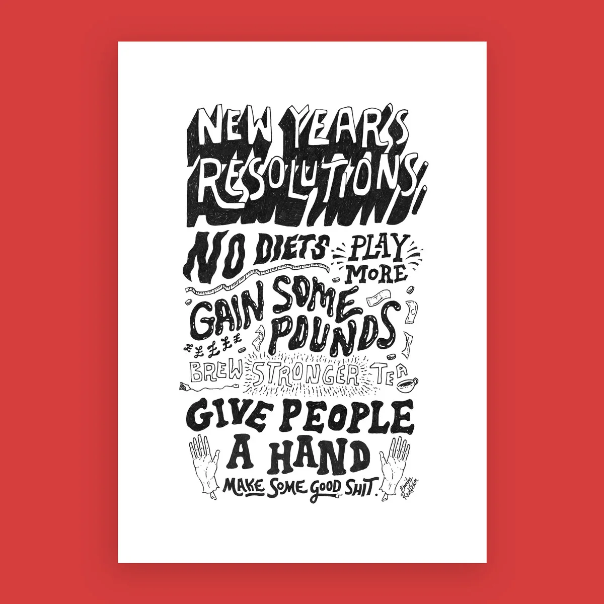 To kick off the new year, I illustrated a New Years resolutions design which the lovely APG Works screen printed for me.